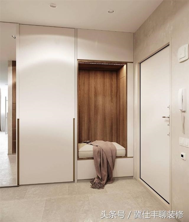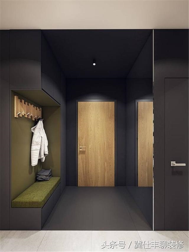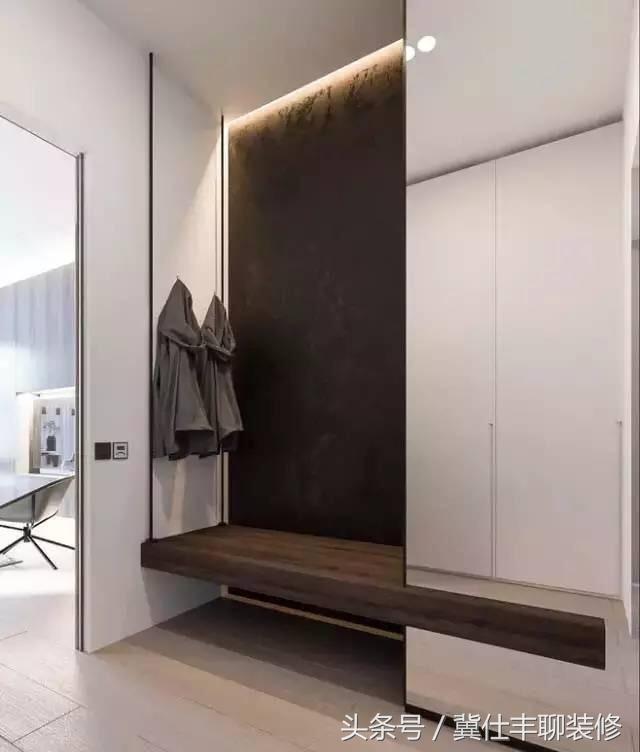 不少朋友装修的时候,对玄关柜的重视程度非常高,这其实是有道理的,越是小户型,就越要注重玄关柜的实用性,比如说,换鞋时能不能坐下来?常穿的鞋和拖鞋摆放在什么位置?女士的长筒靴放在什么位置?鞋柜要不要使用百叶门?进门后钥匙和背包顺手放在什么地方?脱去外套以后放在哪里?雨伞放在哪里?常用的收发快递要用的剪刀胶带签字笔之类的放在哪里?等等,一系列的问题都需要考虑到。