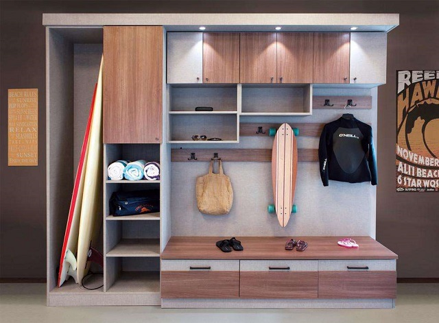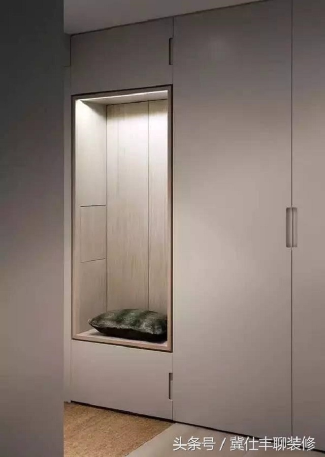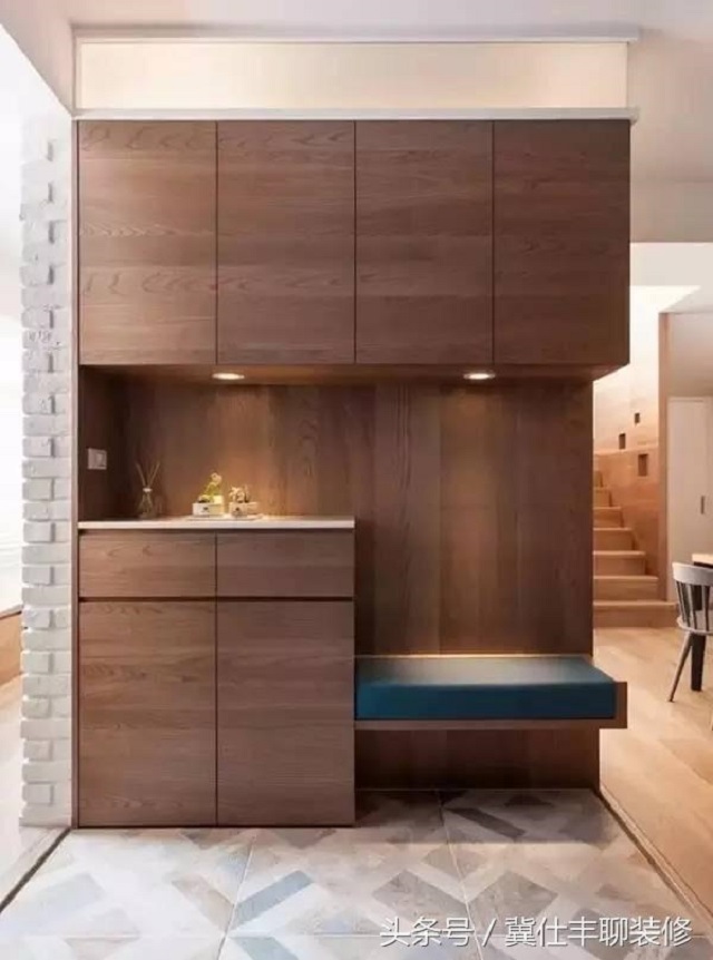 就是在玄关柜内部安装上各种各样的灯,用于满足局部照明,诸如筒灯、LED灯等。